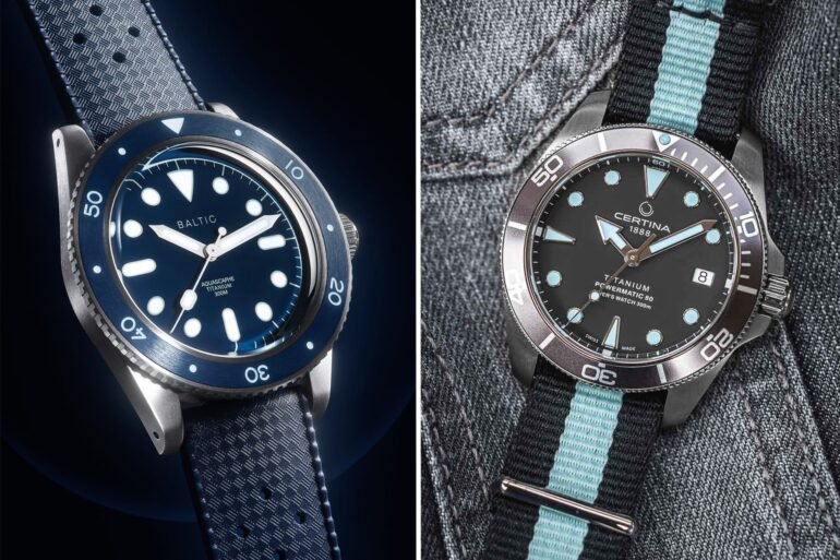 The Baltic Aquascaphe Titanium over the Certina DS Action Diver Titanium