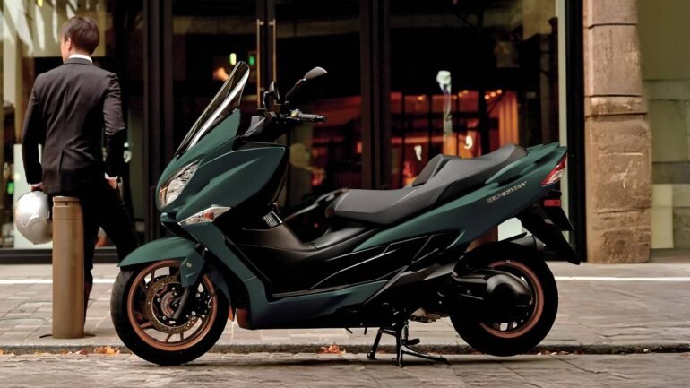 This is the largest scooter in Suzuki’s lineup, and the Burgman 400 is a maxi-scooter designed to go the distance. It is powered by a 400cc single-cylinder, liquid-cooled engine that produces 28.6 horsepower and 26 pound-feet of torque. These figures are comparable to those of entry-level sports bikes. There is no dearth of practicality and storage, as this Suzuki scooter features two storage compartments: a 2.8-liter slot on the left and a 3.5-liter slot on the right, located inside the front bodywork. A relaxed riding position, combined with the provision to put your foot forward and a tall windscreen, helps make this Suzuki scooter cozy during long weekend runs.