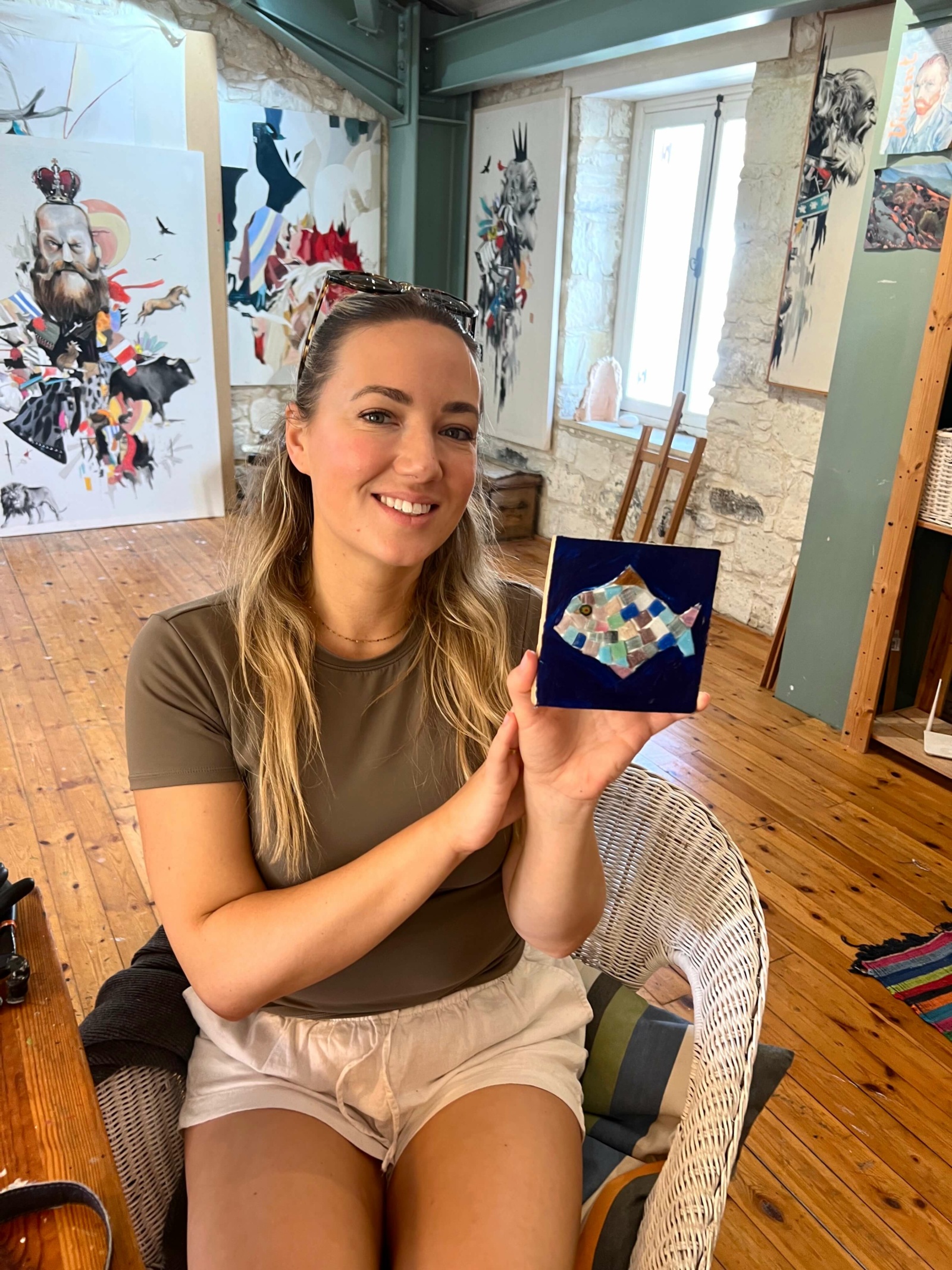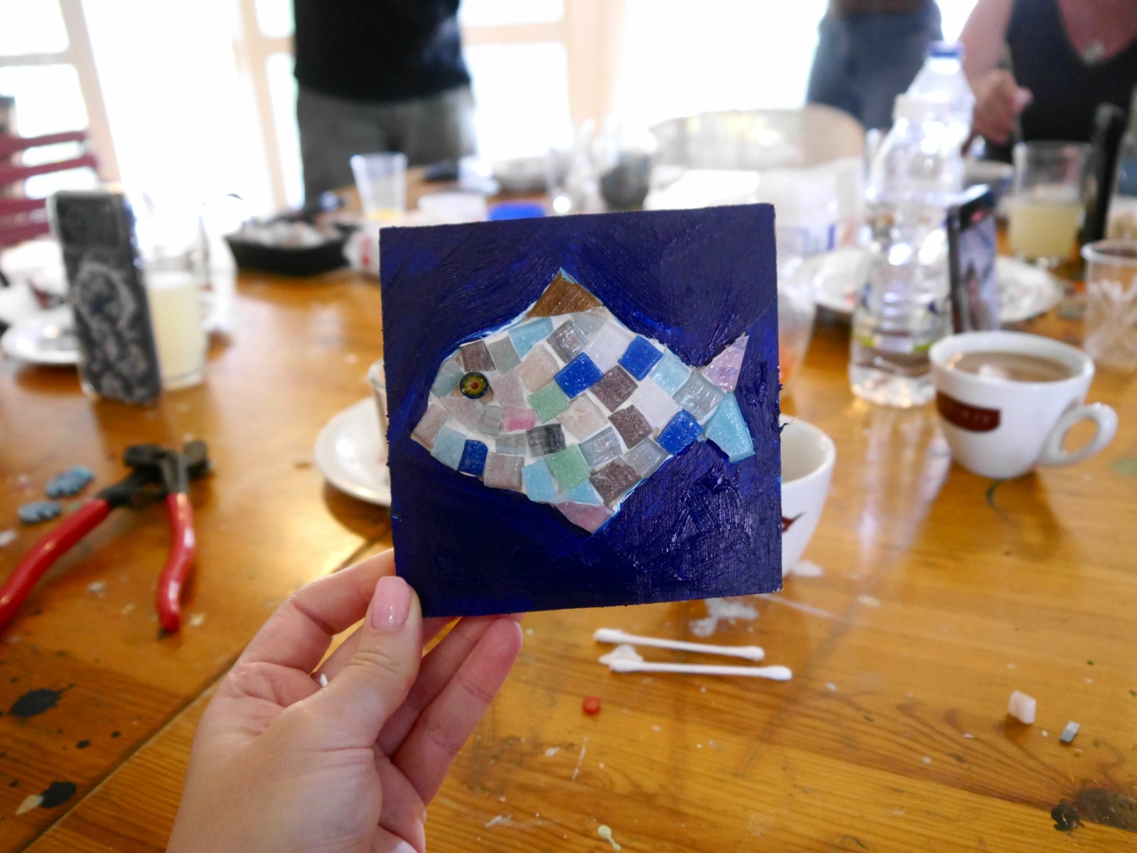 During my time in Lania I got to take part in a mosaic workshop with a Lania-based artist Antonis Rizopoulos who welcomed us into his light and airy studio, and gave us tips and encouragement to create our own mosaic masterpieces. The finished piece is a little souvenir that will always remind me of this unique experience.