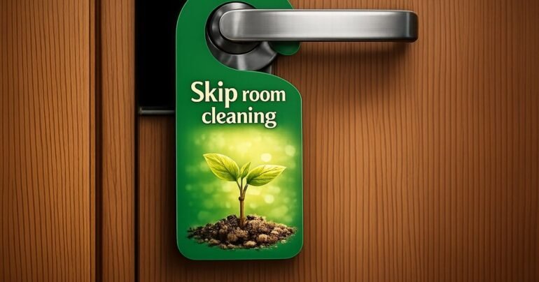 Most hotels already place a small environmental card in bathrooms asking guests to reuse towels. Those messages have been around for decades and often feel passive or symbolic.