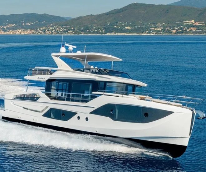 Add that there are no star designers at Absolute and you begin to understand the genesis of the shipyard’s typical exterior lines: looks count, but interior volume counts even more. In typical Absolute style, the exterior look of the Navetta 62 is boxy and vertical, yet simple and appealing.
