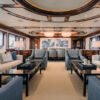 A convertible twin cabin to starboard has beds that can slide together, while to port is a third bathroom, which also serves as a day head. Since the VIP is just as nice as the owner’s cabin, a family may want to use the aft two cabins while leaving the master cabin and its ensuite to their guests.