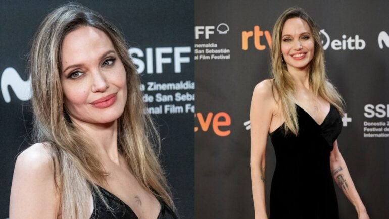 Angelina Jolie brought her signature, minimalist approach to the classic little black dress for the red carpet premiere of her new film “Couture” at the San Sebastian International Film Festival on Sunday in San Sebastian, Spain.