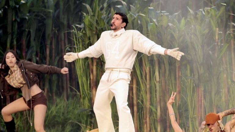Bad Bunny’s Super Bowl Halftime Show—or rather, the Bad Bunny concert surrounded by a couple hours of football—was a feat. Not only was the show almost entirely in Spanish (remember when Benito was first announced as the performer, and said that Americans had four months to learn Spanish? He meant it!). But throughout the 12 minutes of groundbreaking live TV, he managed to nod to cultural references big and small that showcased the cultural prowess of Puerto Rico and greater Latin America. As in, yes, he had Ricky Martin and Daddy Yankee and Karol G up there perreando in his casita. But he also had Toñita, the owner of a tiny Brooklyn bar, on stage serving him a shot (presumably of rum?) in a miniature recreation of her Caribbean Social Club; when Gaga appeared for the sole portion of the performance in English, she wore that blue dress by Luar, the label from American-Dominican designer Raul Lopez. It’s a testament to the creative excellence of Latinos, both throughout Latin America and the greater diaspora. And it was crying-in-Spanish amazing.