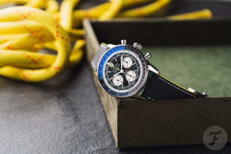 The Formula 1 season is about to start, and that also means new sponsors will appear on the cars. Beginning this season, Breitling will have its name and logo on the Aston Martin Aramco Formula One Team cars raced by Canadian Lance Stroll and Spanish double World Champion Fernando Alonso. Breitling is the team’s Official Watch Partner. And you know what that means: a watch for the fans is hitting the market. To celebrate the new partnership, Breitling Navitimer B01 Chronograph 43 Aston Martin Formula One Team makes its way to the starting grid. It’s a 43mm titanium not-so-limited edition of 1,959 pieces, paying tribute to the year of Aston Martin’s first foray into Formula 1.