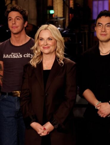SATURDAY NIGHT LIVE — Episode 1886 — Pictured: (l-r) Musical guest Role Model, host Amy Poehler, and Bowen Yang Rosalind...