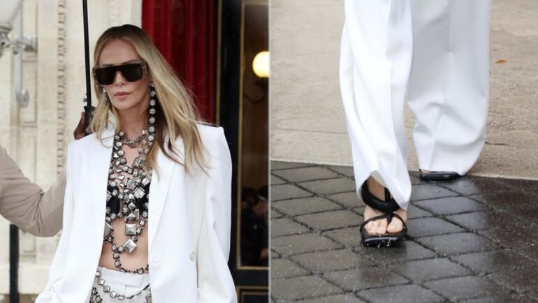 Against the backdrop of Givenchy’s spring 2026 show, Theron’s sandals made a precise point. For an actress whose style toggles between sharp red-carpet stiletto and off-duty flat, the puffy thong landed in between.