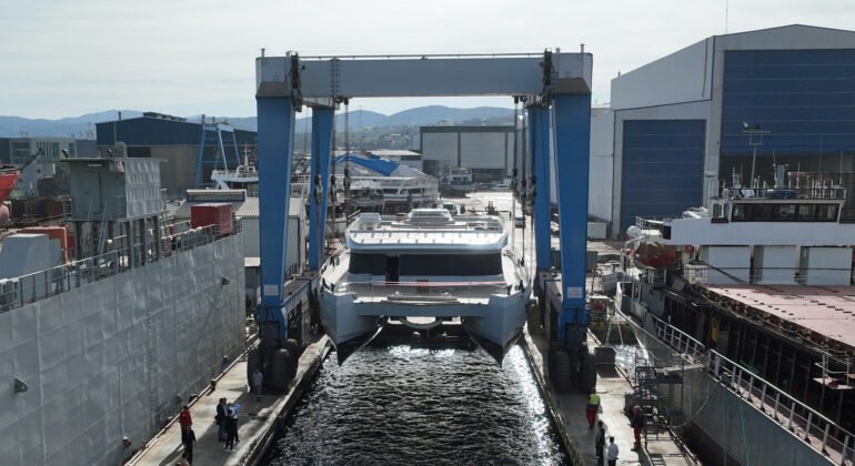 The largest launch from VisionF Yachts is in the water, a major development for two reasons. Firstly, it means the first VisionF 101 yacht is available for viewing. Secondly, it marks the first of what will be a few superyacht catamaran models to come.