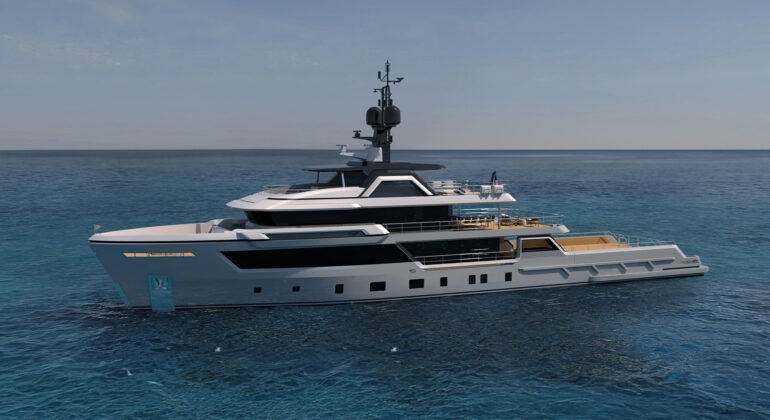 Short for “flexible explorer,” Flexplorer is for cruisers who want stay at sea for long periods while enjoying the creature comforts more typical of so-called white yachts. Both Flexplorer 165 yachts should be able to reach far-flung destinations with a party of 10 aboard in a traditional configuration, guest staterooms below decks and the master suite on the main deck. Ten crewmembers will have five cabins, while—further following tradition—the captain will have a cabin by the wheelhouse.
