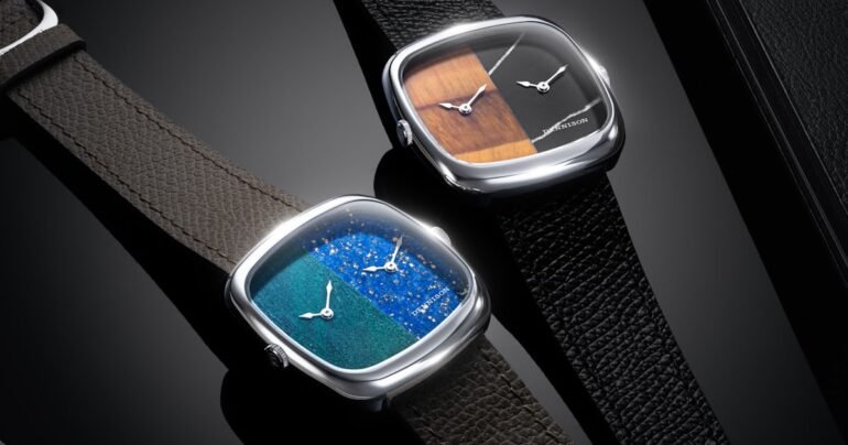 Each ALD Dual Time is powered by dual Swiss quartz Ronda movements, operated by a pair of crowns, one on each side of the case. That keeps the case thickness at an extremely wearable 6.1 millimeters. The stone dials remain differentiators, and there are a couple of different configurations. The dual stone options feature tiger eye and black marble, or bloodstone and lapis, for each handset. In contrast, the ‘monolithic’ options utilize single stone dials in malachite, lapis lazuli, and aventurine, with sunray-finished matching subdials at 3 o’clock to enhance readability.