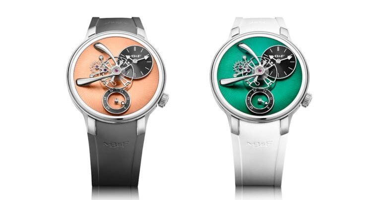 What hasn’t changed is the caliber, aside from the increased power reserve and the new FlexRing surrounding it. The LM101 Caliber, upon its introduction in 2014, was the brand’s first in-house caliber, designed alongside the legendary watchmaker Kari Voutilainen. As a result, its large, sweeping bridges, gold chatons, and wide Geneva stripes remain the same on the caseback. It’s this tribute to classic watch finishing that earns the “Legacy” in “Legacy Machine.” The flying balance wheel continues to use Moser’s Straumann double hairspring, beating away at a leisurely 18,000 VpH, or 2.5Hz.
