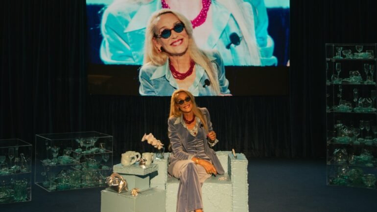 In Completedworks’ spring 2026 presentation, the Texan actor and model took the stage as Miss Edie Grey, a television clairvoyant and mystic extraordinaire that can trace the history of objects with her magical touch.