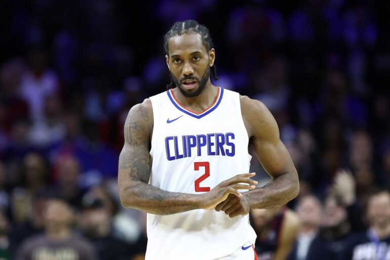 PHILADELPHIA, PENNSYLVANIA – MARCH 27: Kawhi Leonard #2 of the LA Clippers reacts during the fourth quarter against the Philadelphia 76ers at the Wells Fargo Center on March 27, 2024 in Philadelphia, Pennsylvania. NOTE TO USER: User expressly acknowledges and agrees that, by downloading and or using this photograph, User is consenting to the terms and conditions of the Getty Images License Agreement. (Photo by Tim Nwachukwu/Getty Images)