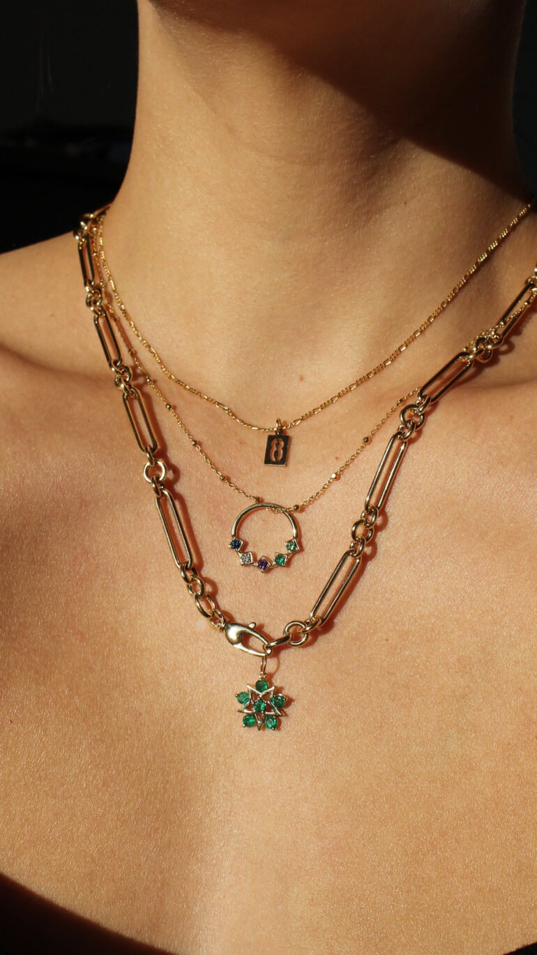 This is the only time you’ll hear me ask you to be basic. I bet you already have a classic chain — you know the ones that usually come with a pendant or charm, typically 16″ or 18″ in length — yes, those! This will act as your foundation to your layered look. I suggest hanging sentimental charms from this chain; pieces from your travels, your favorite colors, anything that makes you happy. Please don’t wear something your ex-boyfriend gave you.