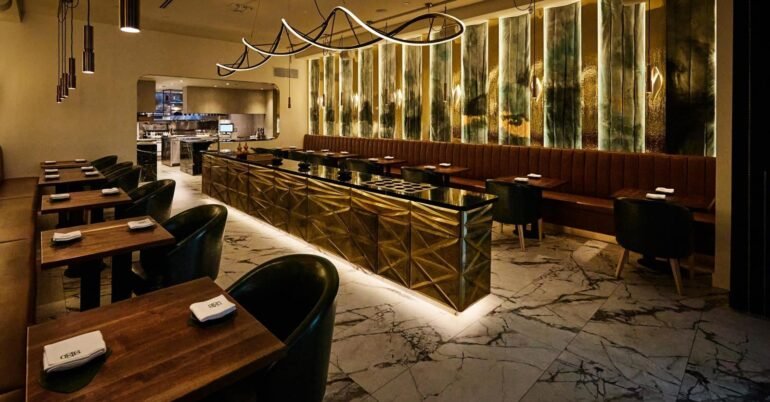 Chef Eric Chong’s modern Asian tasting menu brings together flavors from across the continent while remaining deeply personal. Housed in a gold-accented space with a four-seat chef’s counter, aKin reimagines what Chinese cuisine can look like at the highest level. Dishes like lobster cheung fun, Iberico char siu bao, and grilled langoustine with silver needle noodles show precision, boldness, and refinement.