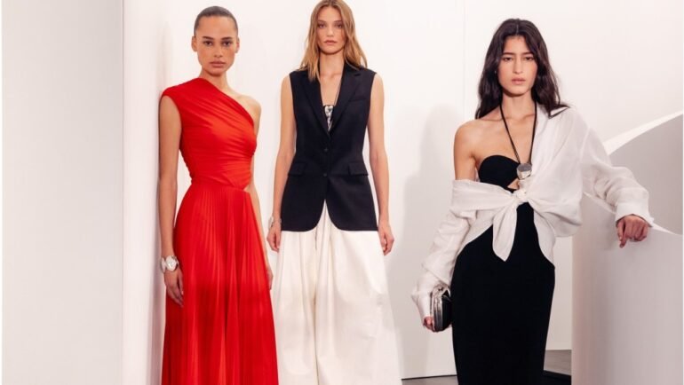 There was a very specific mood at Ralph Lauren this season, one rooted in modern sensuality, a sense of escapism, ample ease with restraint and minimalist touches. Held at the company’s headquarters at 650 Madison Avenue with celebrity guests including Naomi Watts, Laura Dern, Jessica Chastain, Priyanka and Nick Jonas, Maggie Rogers, Ariana DeBose, and Usher (the face of the new Ralph’s Club New York eau de parfum), the intimate show’s focus was on the clothes and attitude over spectacle.