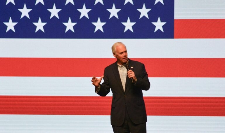 US Senator Ron Johnson (R-WI) speaks during a town hall in Green Bay, Wisconsin earlier this year. Johnson has introduced legislation that would prevent government shutdowns through an automatic continuing resolution (Photo by ROBIN LEGRAND/AFP via Getty Images)