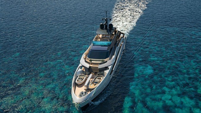 Among the many global premieres at this week’s Monaco Yacht Show, Tankoa’s Loewe stands out for packing the features of a much larger vessel into a 180-foot hull. Loewe features a generous beach club, six cabins, three pools, an elevator, and a gym. Plus, pioneering inserts like the Nemo window, a transparent area below the waterline where guests can watch marine life flicker past the hull.