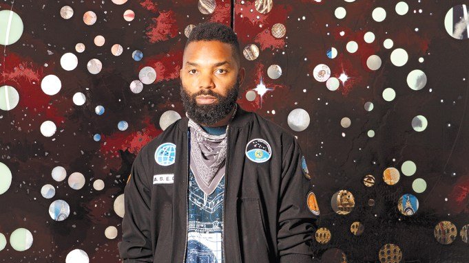 The show, which features more than 35 pieces in a series of disparate environments, evolved out of a long-standing relationship between Strachan and LACMA. “Museums, I think, have this thing where they adopt artists,” he says with a laugh. “You become a part of a museum’s family.” In 2014, he received LACMA’s Art + Technology Lab Artist Grant, which led to his sculpture Enoch (2018) being launched into space and orbiting the Earth for three years. The gilded portrait, resembling an Egyptian canopic jar, pays tribute to Robert Henry Lawrence Jr., the first Black astronaut, as does a second sculpture in the LACMA show, which Strachan describes as “a neon portrait of the innards of his body.”