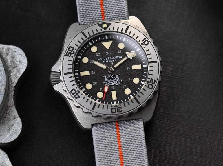The JB300 Poulpro arrives as Jacques Bianchi Marseille’s latest take on a serious dive watch. It pairs some of the frivolous style of the earlier JB200 Poulpro with a more technical, titanium-based platform. This isn’t about flash; it’s about refining a recognized design language into something even more purposeful.