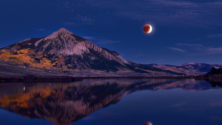 A lunar eclipse occurs when the sun, Earth, and moon align just right, with our planet positioned squarely between the sun and the full moon. As the moon moves through Earth’s shadow, sunlight filtering through our atmosphere bathes it in shades of red and orange, turning the moon blood red.