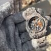 A private gallery with a multi-colored chandelier and kaleidoscopic stone flooring beckons you into the eighth-floor unit. To the immediate right is a small guest room with an en suite bath and Murphy bed, and further in is an office, also with a private bath. The kitchen, anchored by a monolithic Cosmopolitan quartzite island atop chevron oak floors, leans into the glamour of it all with a La Cornue induction range, shimmering hammered metal cabinetry, and a Murano glass chandelier. The 30-foot-long dining room and the living room with an antique marble fireplace are straight shots ahead from here.