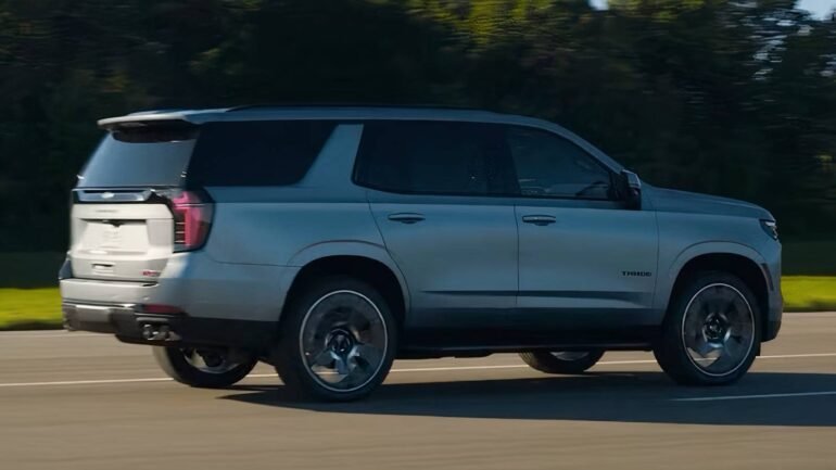 2025 Chevrolet Suburban in black driving on road