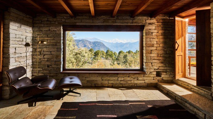 Prana is remote: nearly five hours’ drive from Pantnagar Airport on hairpin mountain roads, and a steep mile walk (that takes nearly an hour) from the road to the property. On the journey up, I passed some of the mules that carried materials up and down the hill during construction. Because of its seclusion, Prana had to be built by hand. Each of the seven cottages has a floor-to-ceiling window with views of the jagged mountains, a wood-burning stove, a sitting room, and a stone bathroom. Meals are safari-style, with a cocktail hour around the central lodge’s stone fireplace before a multi-course meal prepared by Chef Yeshi, a former Tibetan monk.