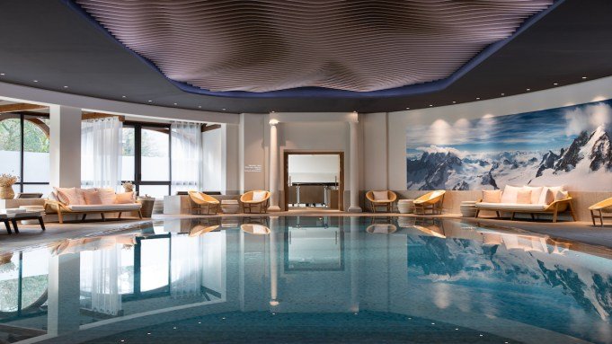 In fact, the resort’s 18,000-square-foot spa, which unveiled a massive renovation in early 2024, is the first Evian-branded spa in Europe, leaning into the region’s natural assets with an elaborate hydrotherapy circuit of outdoor baths, snow room, cold plunge, and stunning indoor pool. Traditional offerings and sauna exist as well, but this is an ideal opportunity to indulge in a Water Journey Ritual—a 150-minute therapist-led treatment featuring hydromassage in a private steam room—one of about a dozen treatments inspired by the life cycle of Evian water.