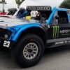 High-angle action shot of 2026 Honda Passport Transport in orange driving in desert