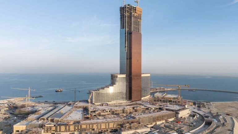 On November 25, 2025, Wynn Al Marjan Island commemorated a significant milestone in its construction: the topping off of the resort’s 70-story hotel tower, now standing at its full height of 1,000 feet.